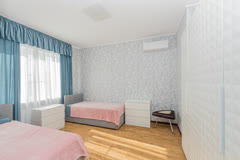 Дом построен в 2014 году бригадой собственника. В 2022 году сделан ремонт. Заведено 3 фазы (15кВТ), на каждой фазе стоит стабилизатор. В 2023 дополнительно был утеплен пеноизолом. В доме 6 спален, кухня-гостиная, два санузла, хозяйственная комната, тамбур, открытая терраса, гараж с сухим подвалом. Все комнаты оснащены сплит-системами Fujitsu.