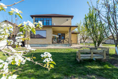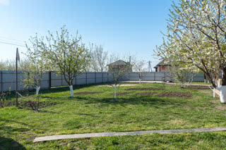 На участке- 22 фруктовых дерева (черешня, вишня, груша яблони, слива, унаби ,инжир, абрикос),клубника, малина. По периметру участка (за забором) - вишневый сад более 20 деревьев.